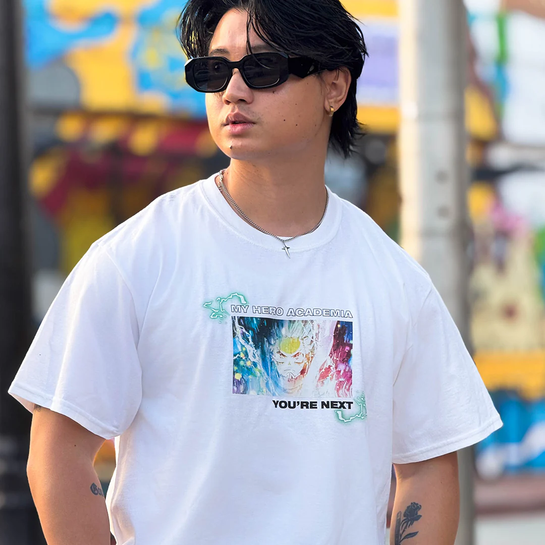 Celebrate the stars of My Hero Academia: You're Next with the My Hero Academia: You're Next Three Heroes White T-Shirt. Featuring Izuku Midoriya, Katsuki Bakugo, and Shoto Todoroki, this white, 100% soft spun cotton t-shirt bears stylized front and back prints emblazoned with each character's color quirk effects.